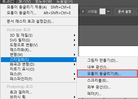 -[모퉁이 둥글리기] 메뉴를 클릭합니다.