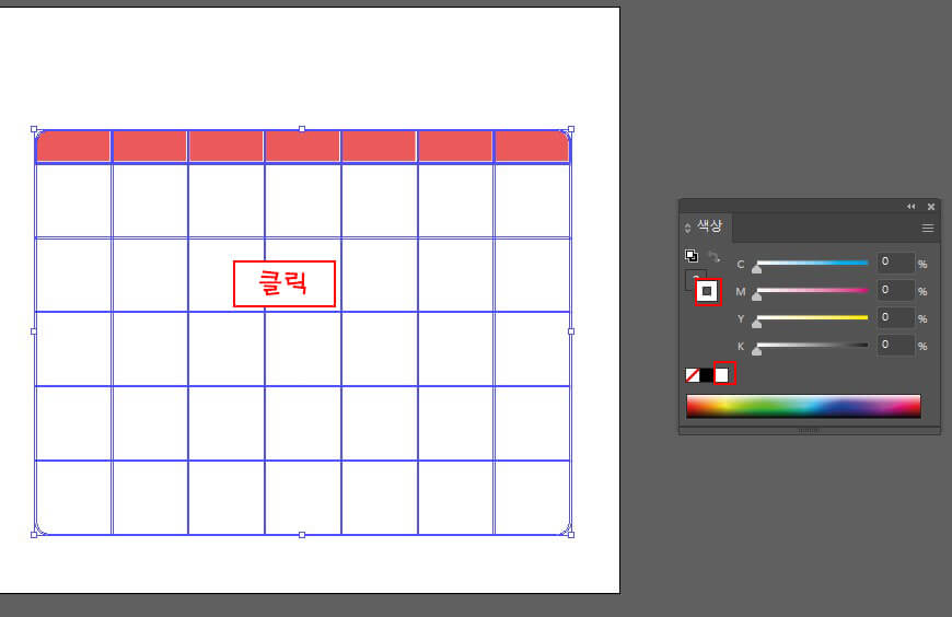 색상 패널에서 [면]을 빨간색(C:0, M:77, Y:56, K:0)