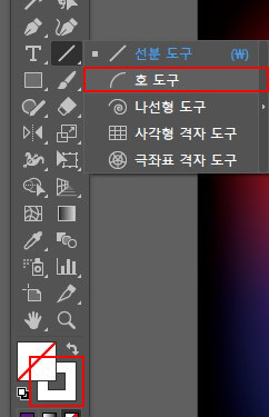 선 툴을 길게 눌러 호 도구를 선택합니다.