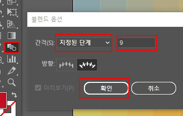 블렌드 옵션 창에서 간격을 매끄러운 색상을