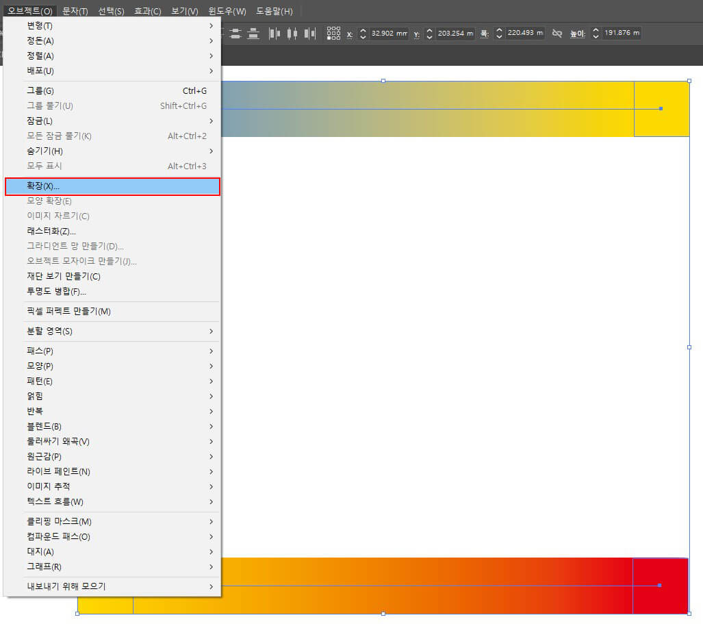 [오브젝트]-[확장] 메뉴를 클릭합니다.
