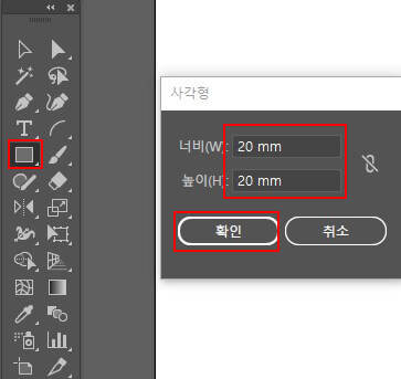 그런 다음 사각형 툴을 선택하고 아트보드의