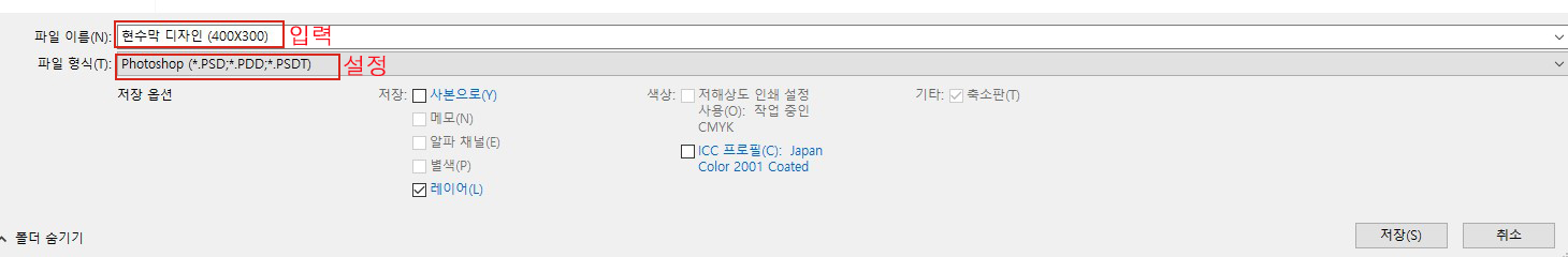 PSD로 저장합니다. 그런 뒤 경고 창이 나오면