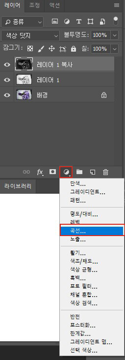 레이어 하단의 조정 레이어 추가를 선택하고