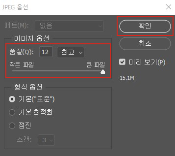 메뉴를 클릭한 후 포맷방식은 JPEG로