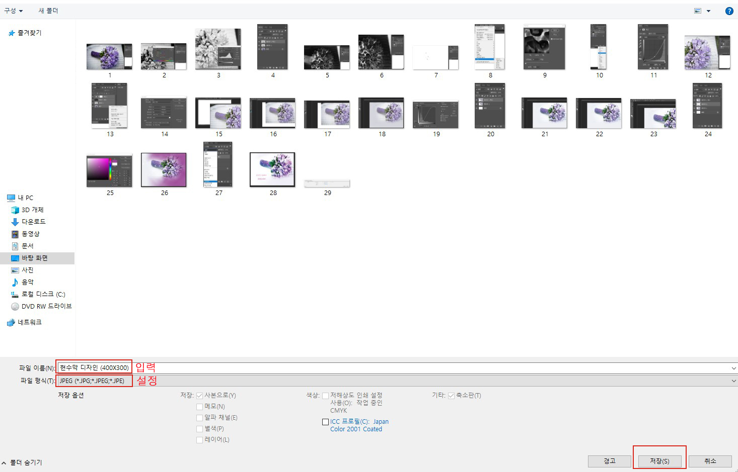 28 작업 파일로 저장하기 위해 원하는 폴더에