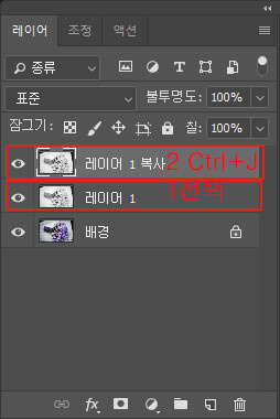 그러고 나서 Ctrl+J를 눌러 레이어를