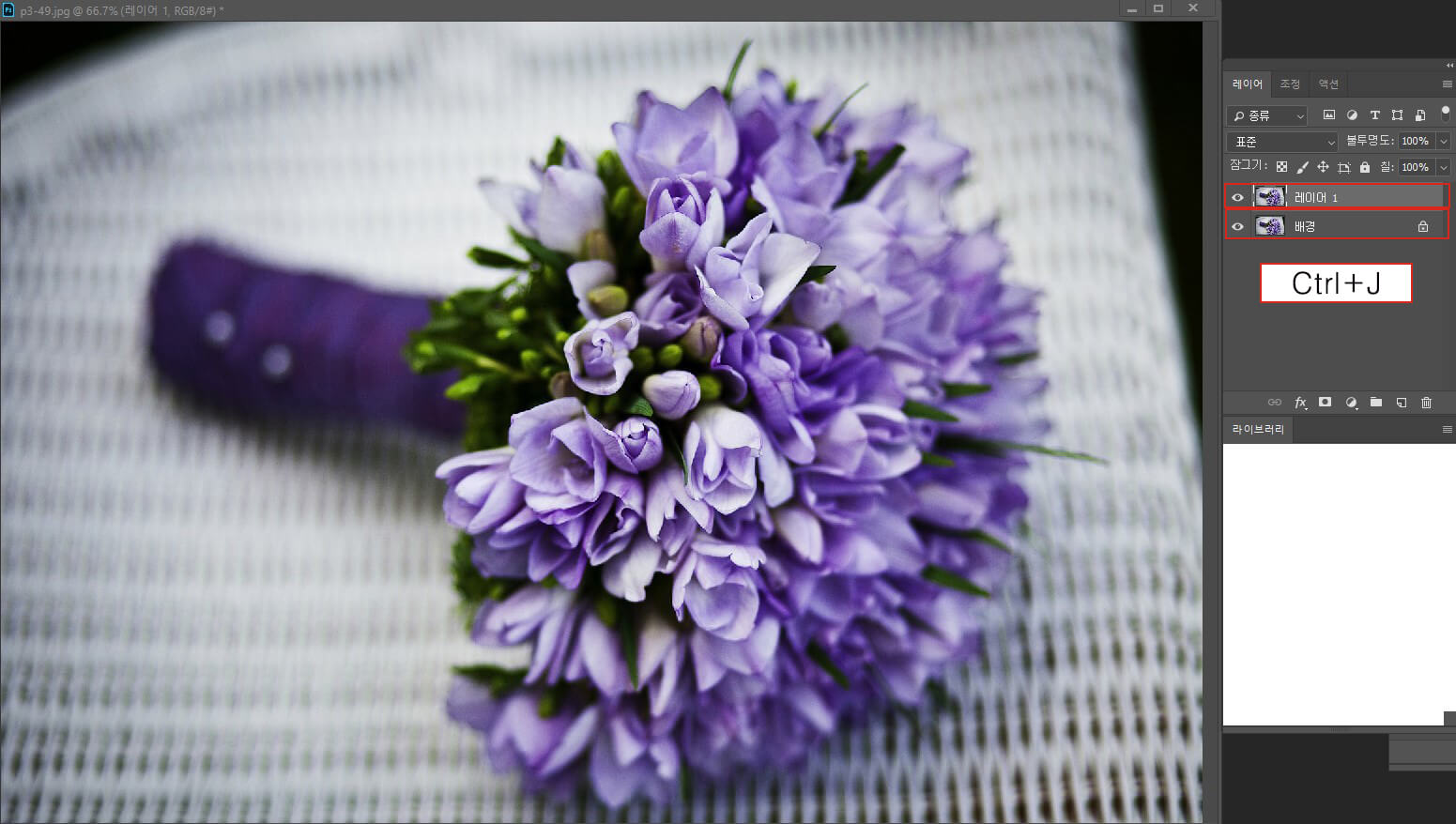 그러고 나서 Ctrl+J를 눌러 레이어를