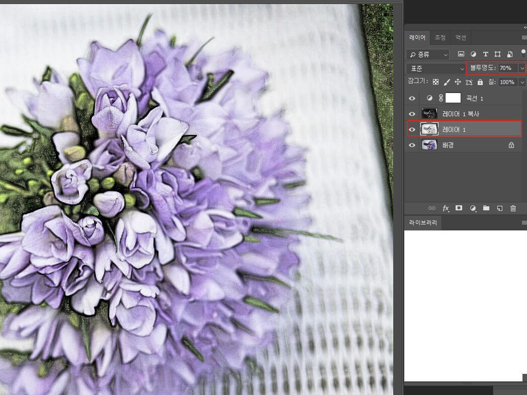 레이어의 투명도 값을 '70%'로 설정합니다.