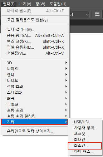 07 [필터]-[기타]-[최소값]메뉴를 클릭합니다.