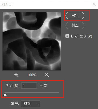않게 [Radius]를 '4 pixels'로 설정한 후