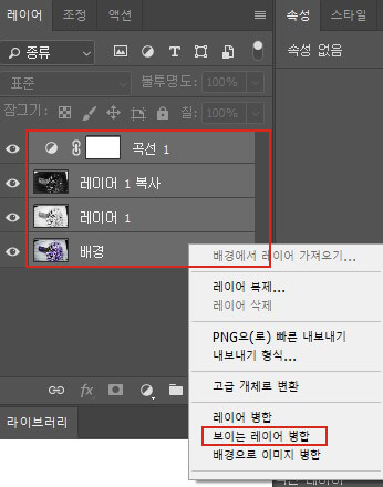 레이어를 모두 선택한 후 마우스 오른쪽