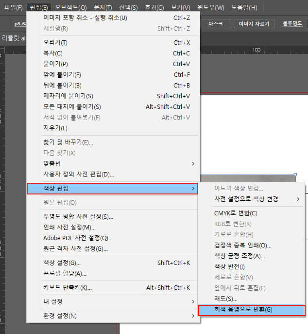 [편집]-[색상 편집]-[회색 음영으로 전환]