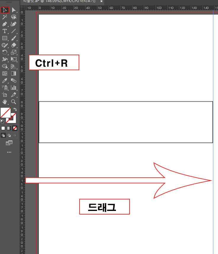 왼쪽 눈금선에 가져다 놓은 후 클릭한