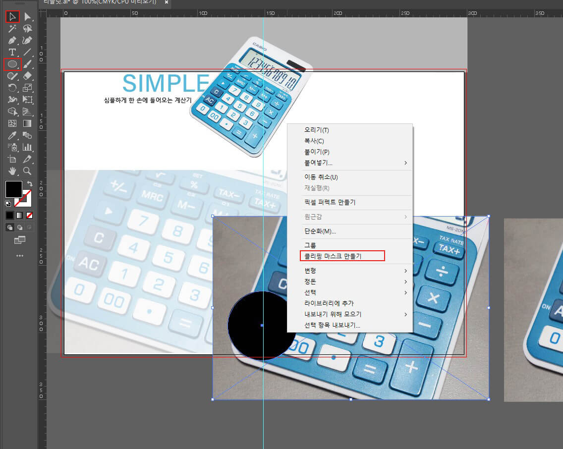 마우스 오른쪽 버튼을 눌러 클리핑마스크