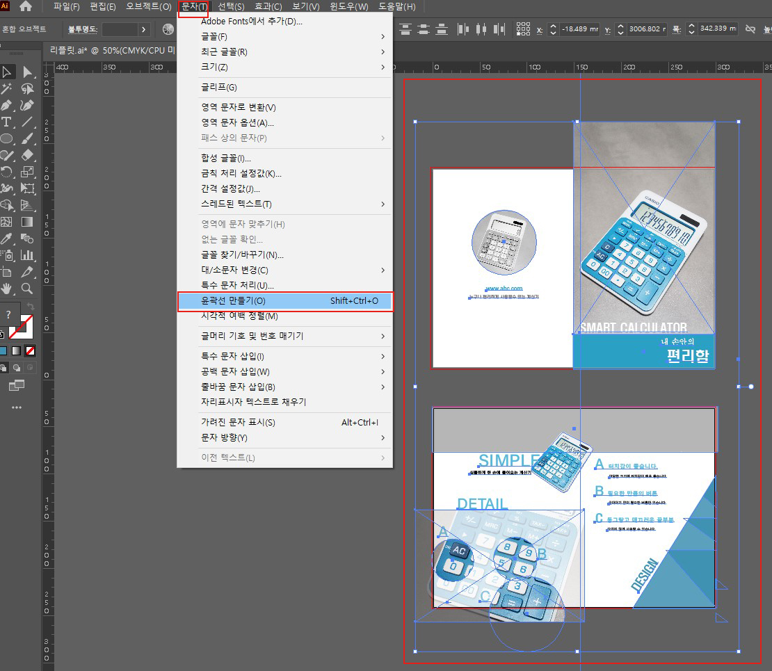 모두 선택한 후 [문자]-[윤곽선 만들기]
