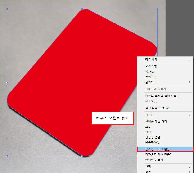 마우스 오른쪽 버튼을 눌러 클리핑마스크