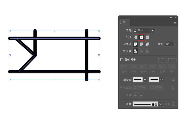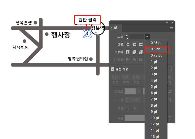 않아 두꺼워집니다. 이때 원만 선택한 후