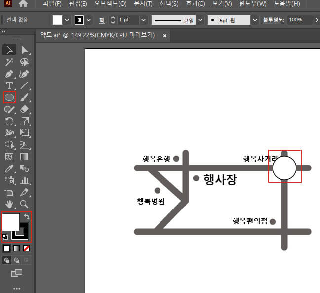 원형 툴을 클릭해 원하는 곳에 원을