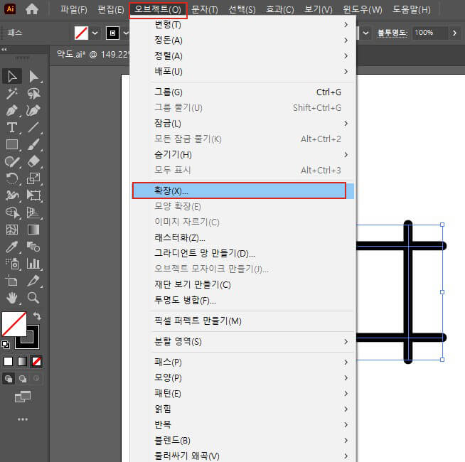 [오브젝트]-[확장] 메뉴를 클릭합니다.