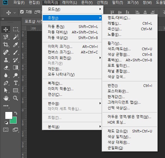 [이미지]-[조정] 메뉴에는 이미지를 보정하는