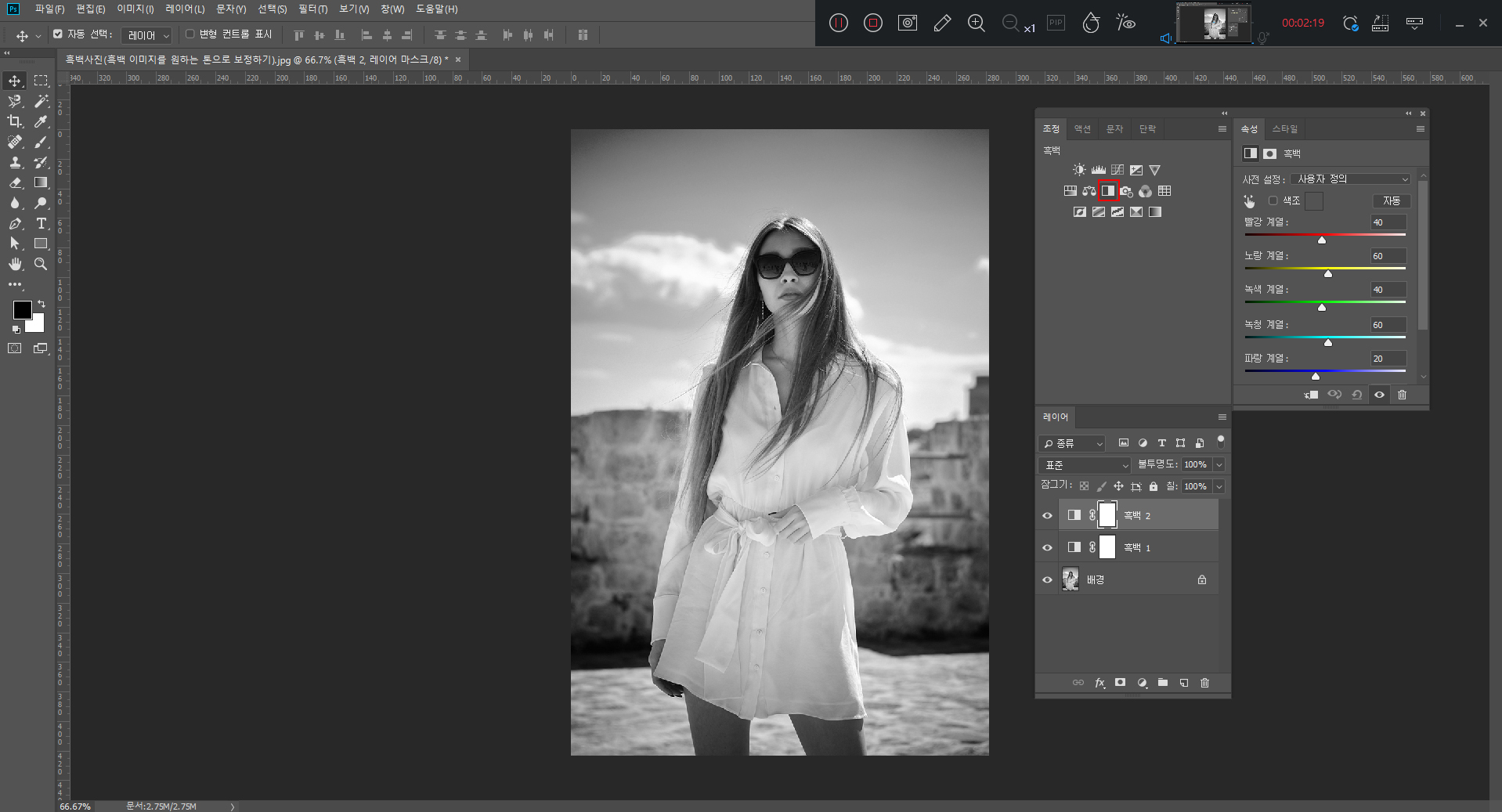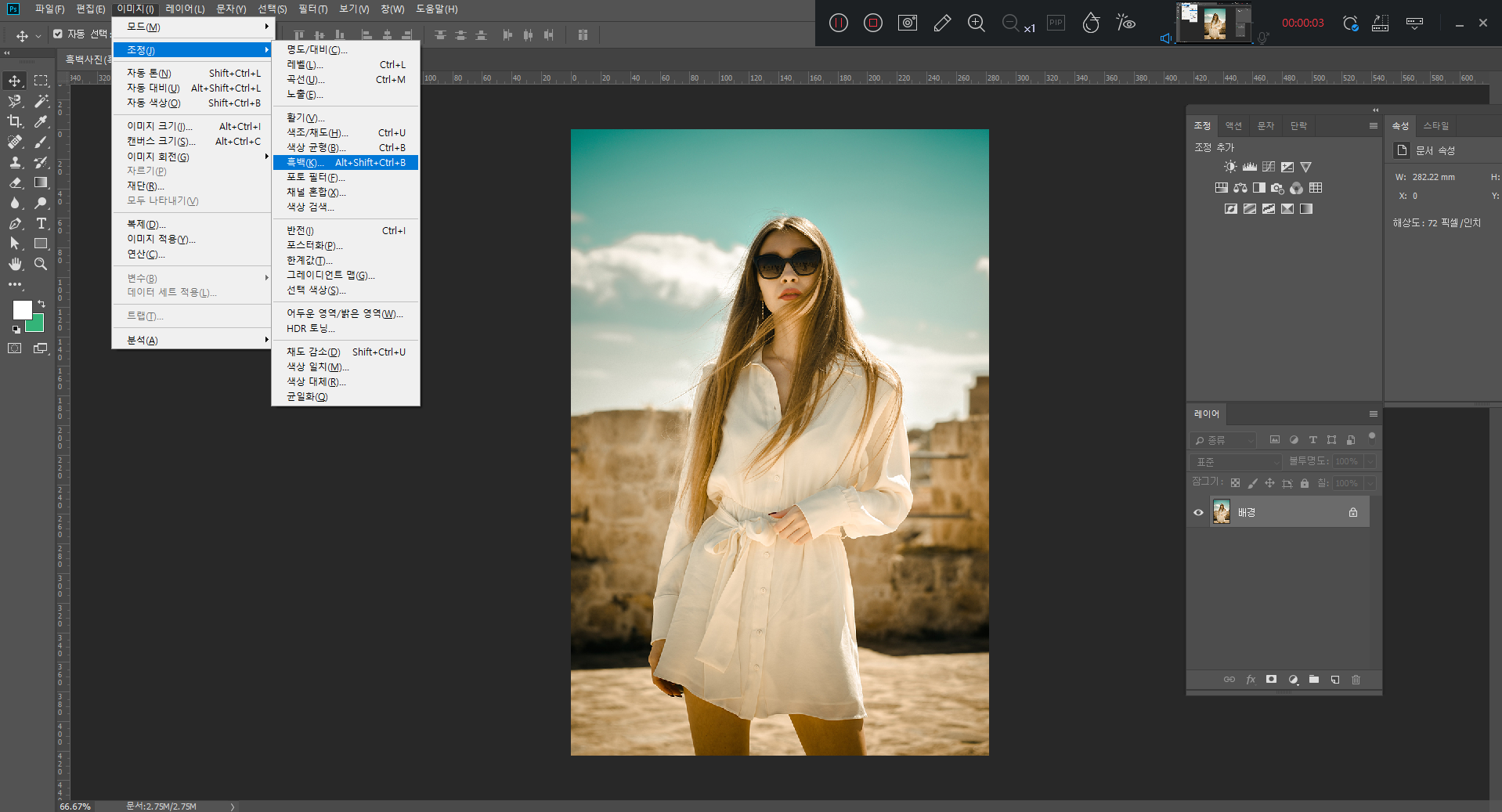 [이미지]-[조정]-[흑백] 메뉴를 선택합니다.
