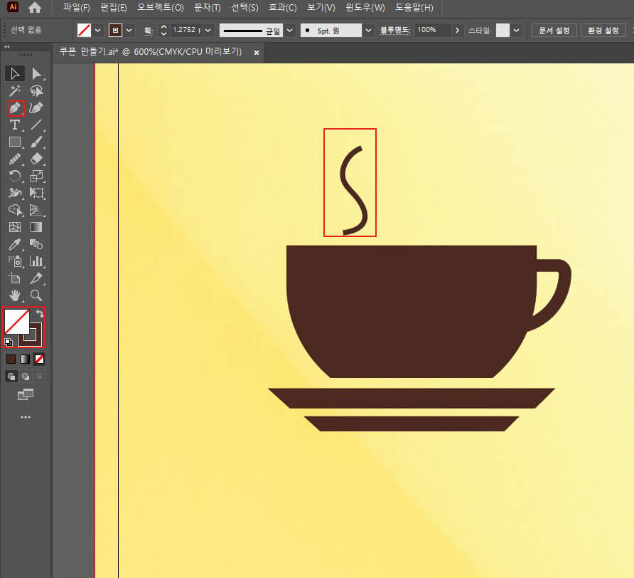 펜툴을 이용해서 연기 모양의 S를 그립니다.