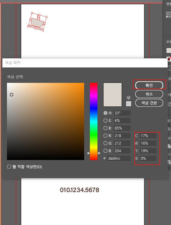 C:17, M:16, Y:19, K:0으로 설정하고