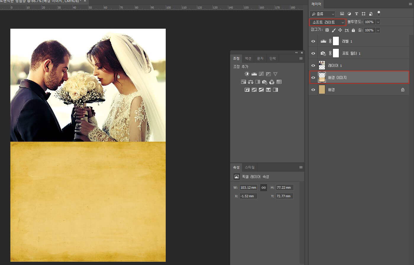 블랜딩 모드를 '소프트 라이트'로 변경합니다.