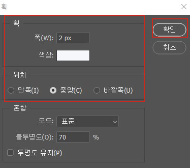 14 [편집]-[획] 메뉴를 실행하고 [획]