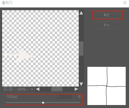 18 [필터]-[왜곡]-[돌리기]를 실행하고