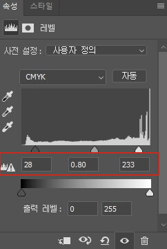 레이어 패널에서 레벨 조정 레이어를 추가하고