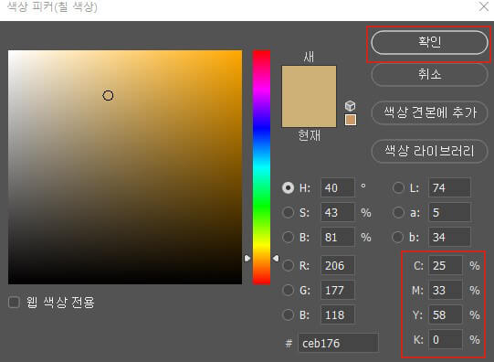 CMYK 모드 배경 내용은 흰색으로 설정하고