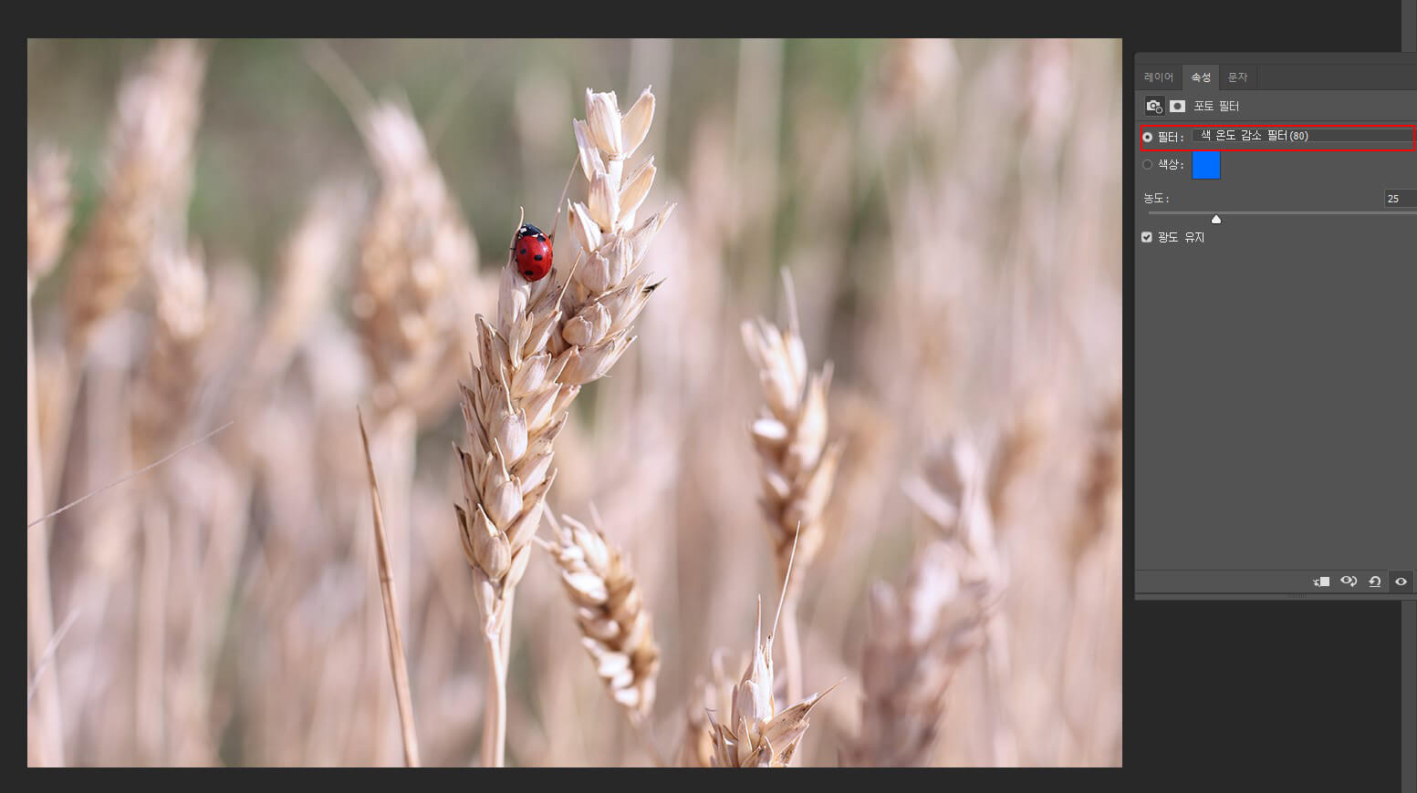[속성] 패널에서 필터를 쿨링필터 80으로
