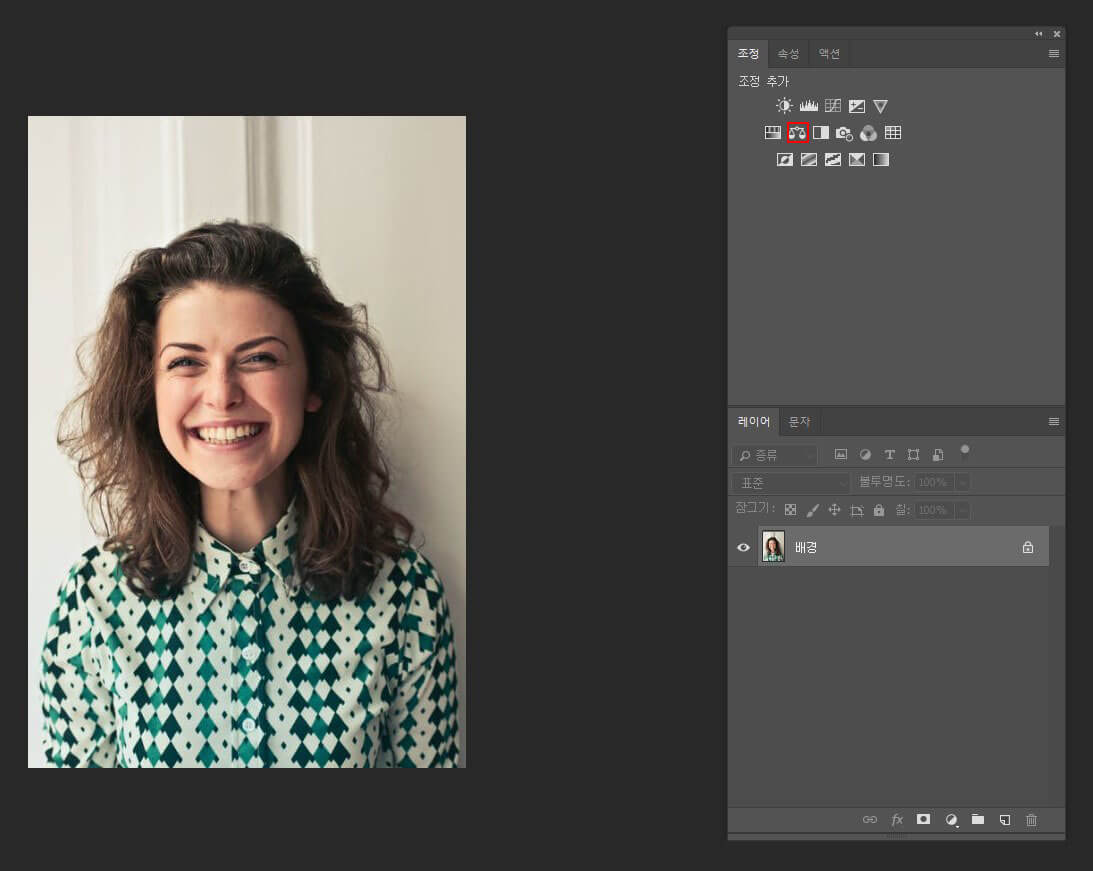 01 파일을 불러와서 [조정] 패널의 색상 균형을