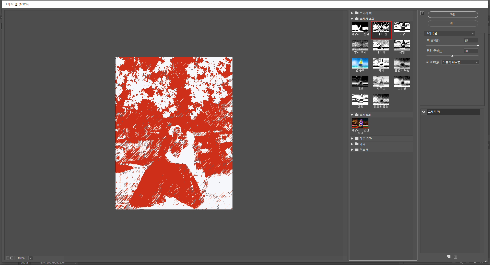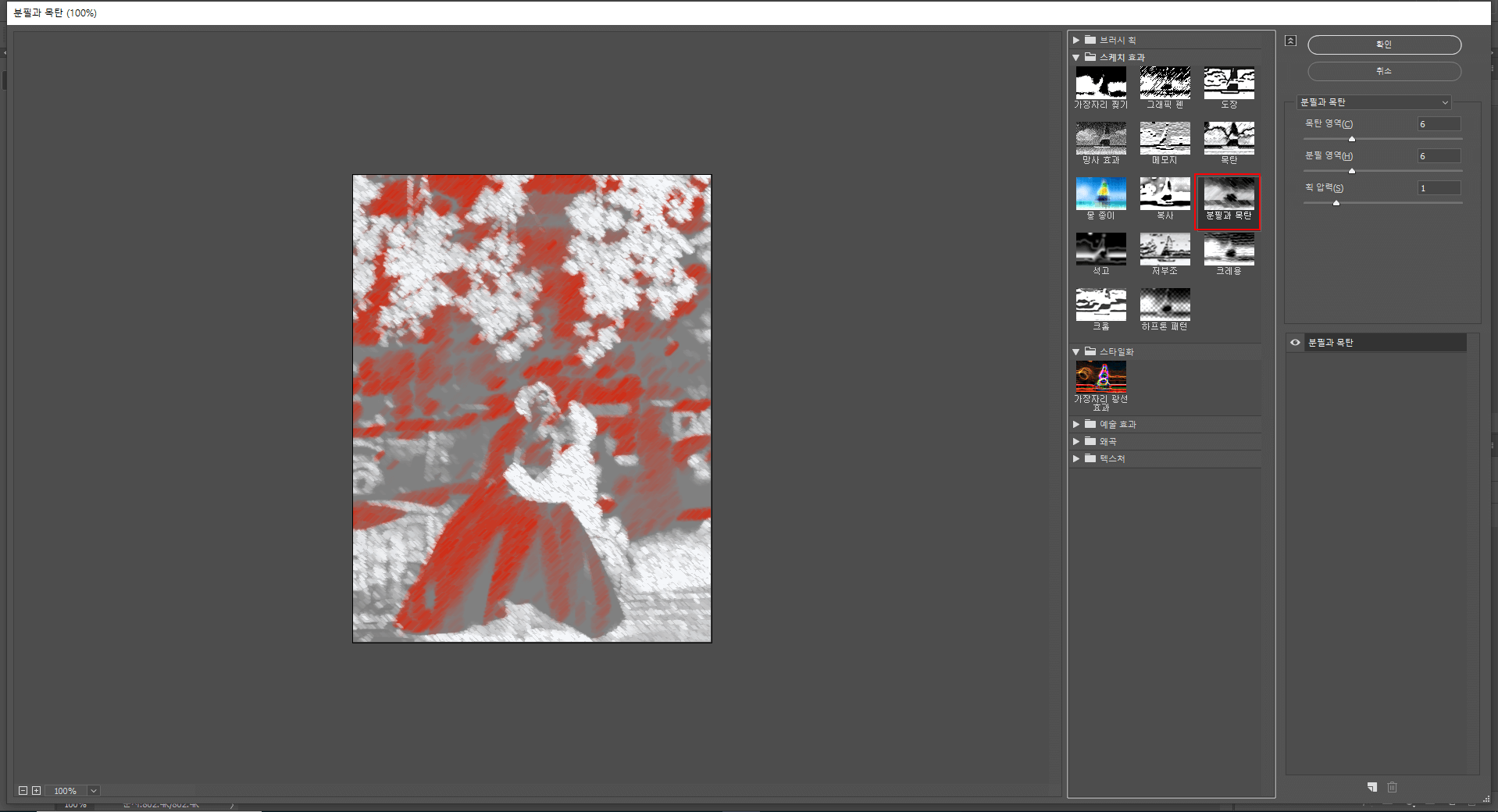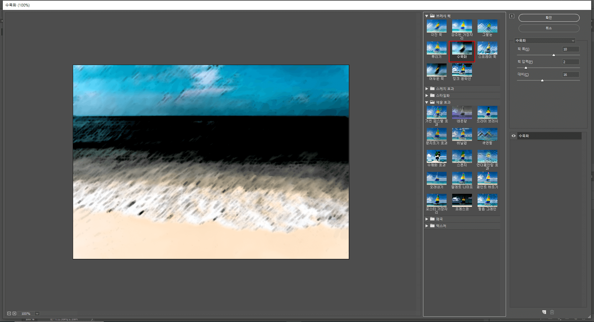 브러시와 잉크가 번진듯한 선 효과를 주는 브러시 획 필터