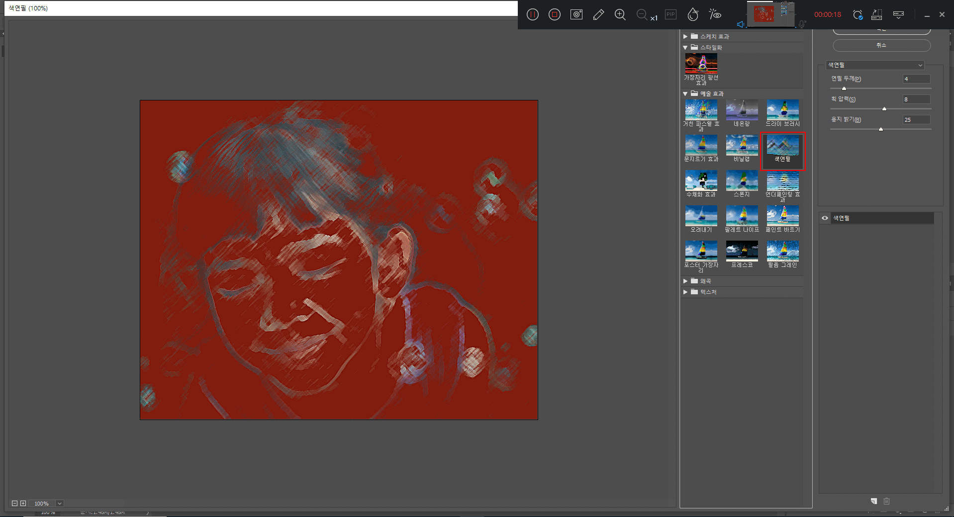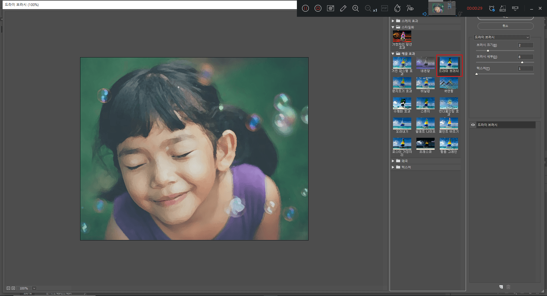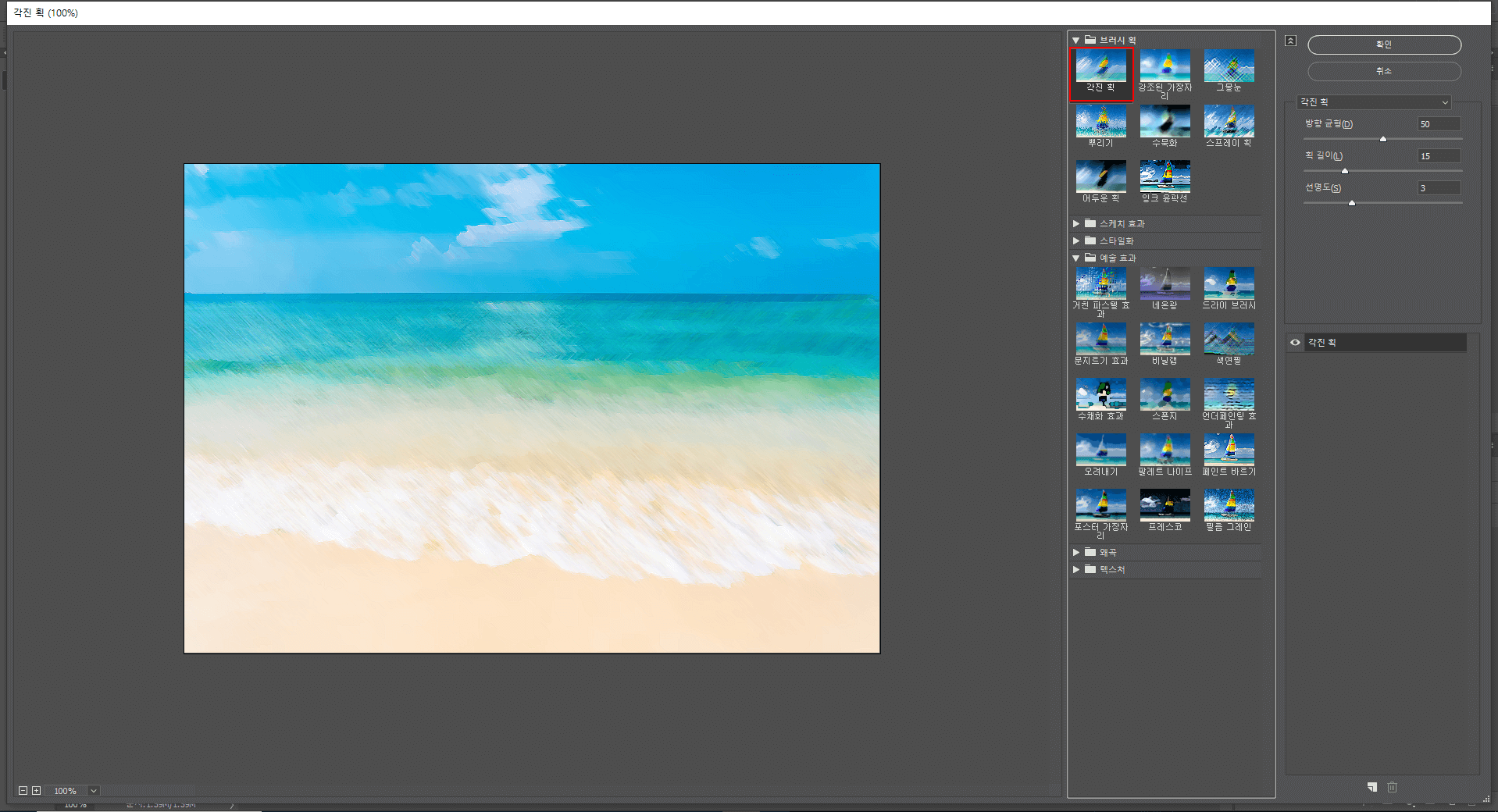 브러시와 잉크가 번진듯한 선 효과를 주는 브러시 획 필터