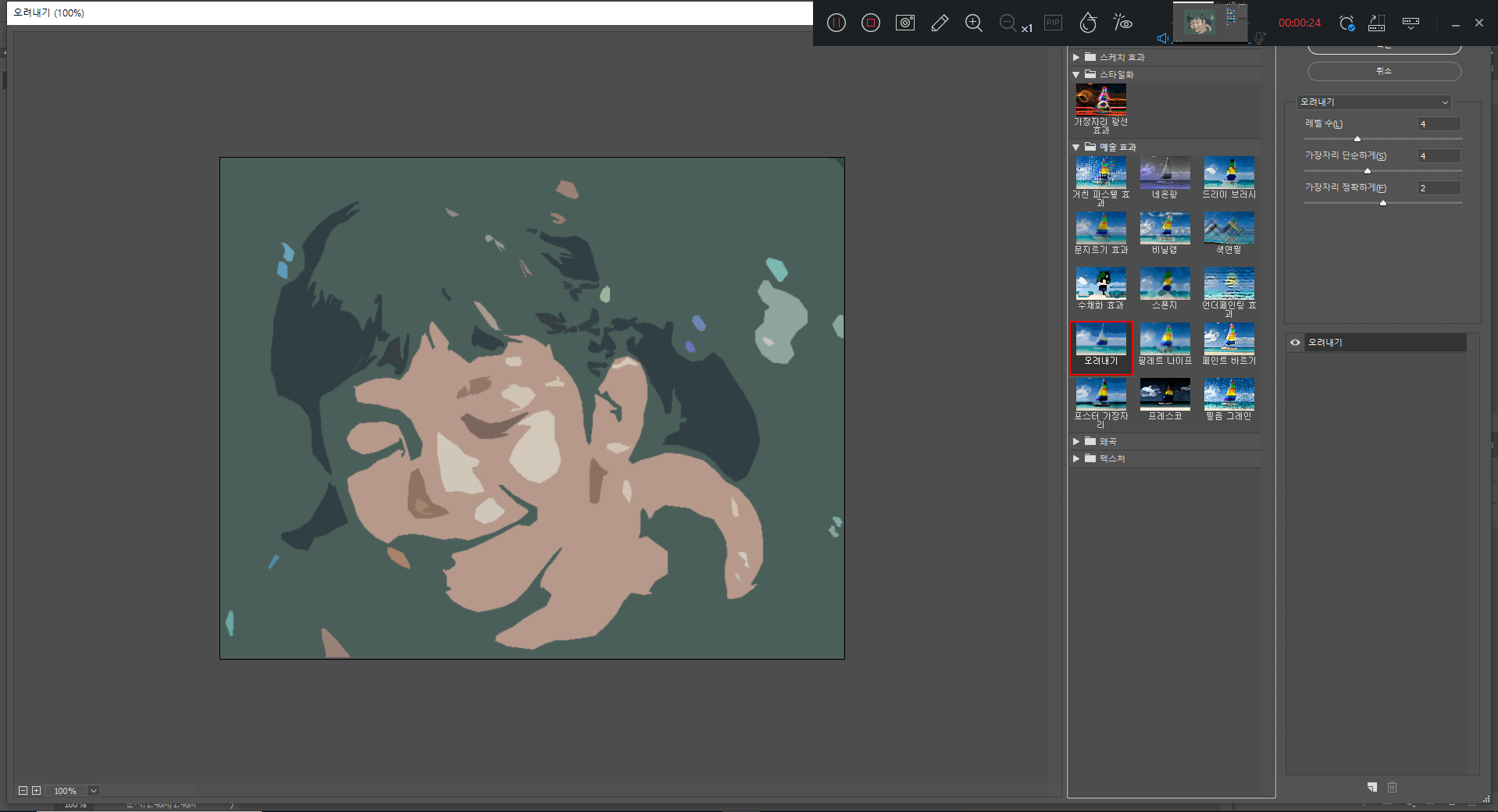 브러시와 잉크가 번진듯한 선 효과를 주는 브러시 획 필터
