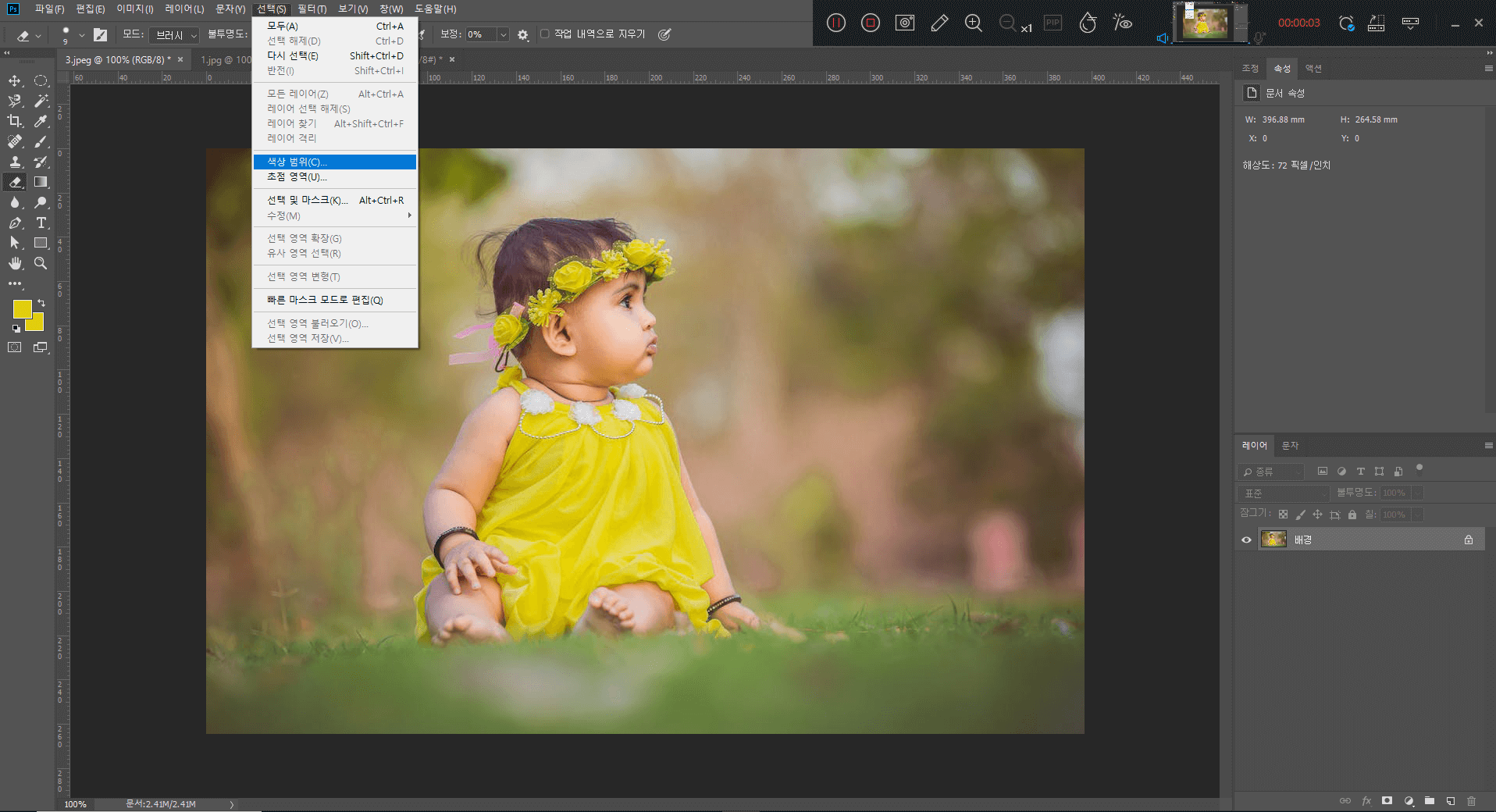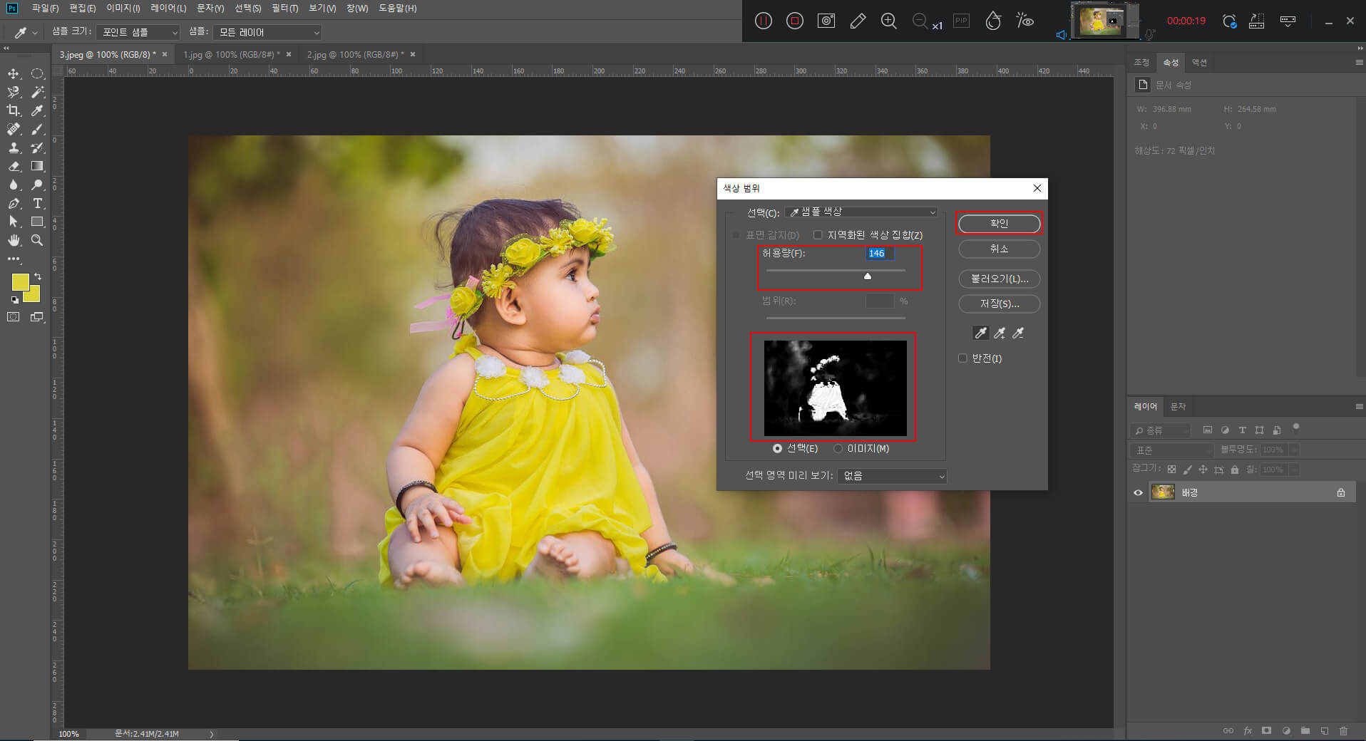 스포이트 툴로 아이의 옷 영역을 먼저 클릭하고