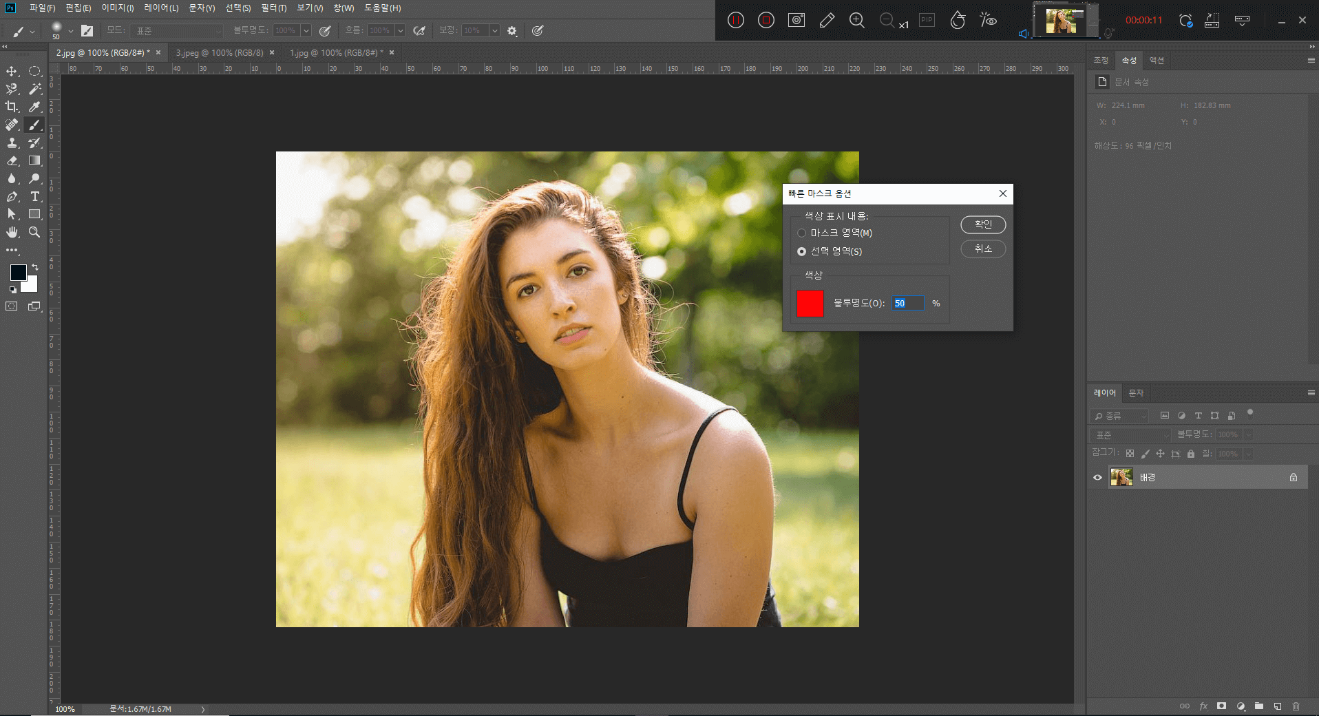 퀵 마스크 모드를 더블클릭하고
