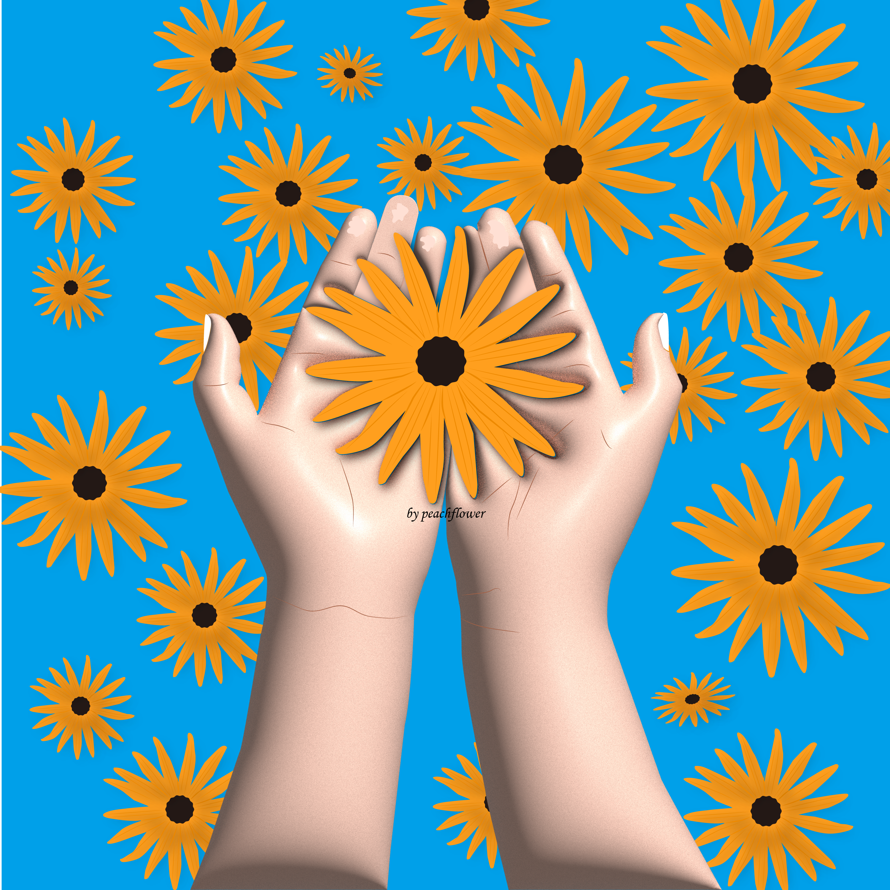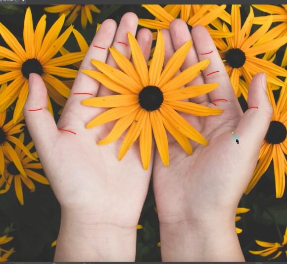 꽃 사진을 배경으로 해서 드로잉 해봤고요