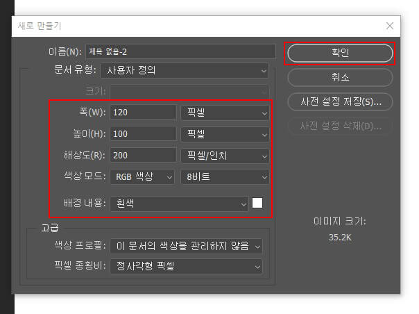 설정하고 확인 버튼을 클릭합니다.