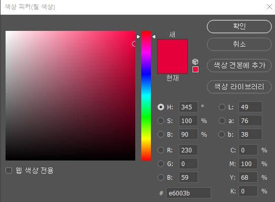 그리고 색상을  C:0, M:100, Y:68, K:0으로