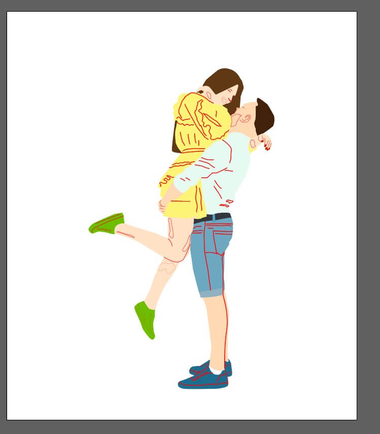 펜툴로 커플의 윤곽선을 그려주도록 합니다.