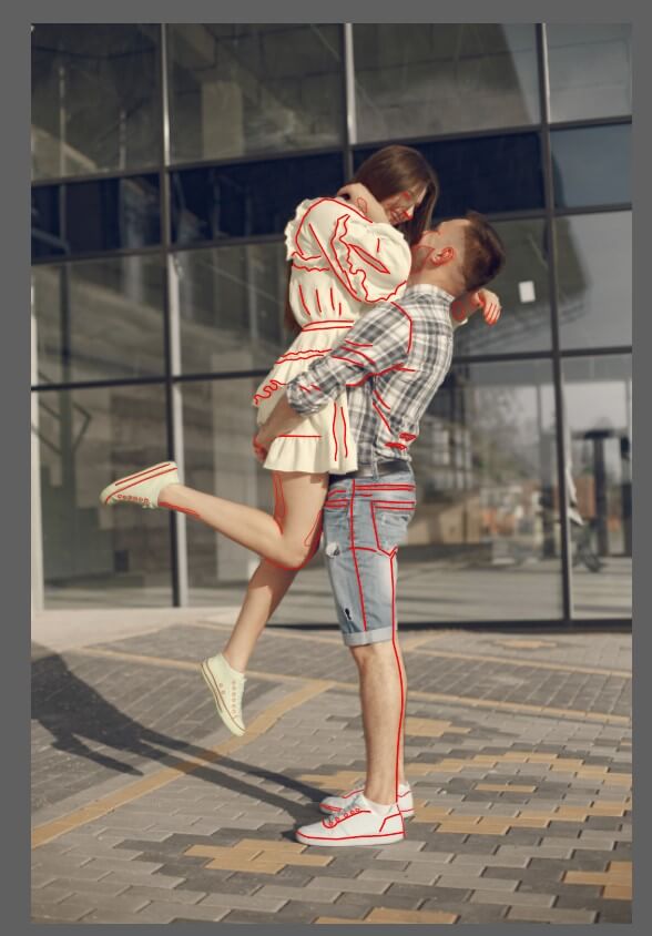 펜툴로 커플의 윤곽선을 그려주도록 합니다.