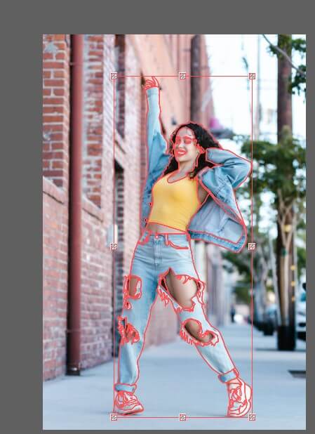 설정해서 여성의 윤곽선을 머리부터 발끝까지