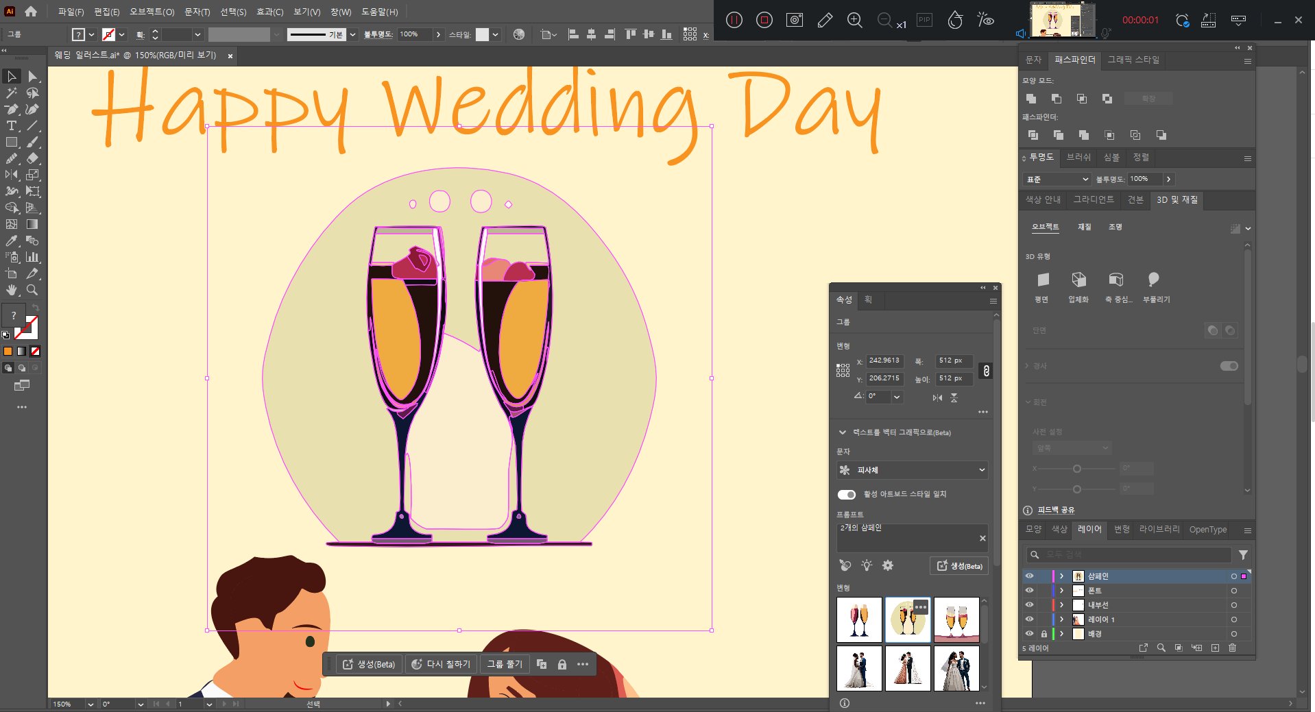 쉽게 웨딩 일러스트를 완성하는 과정을