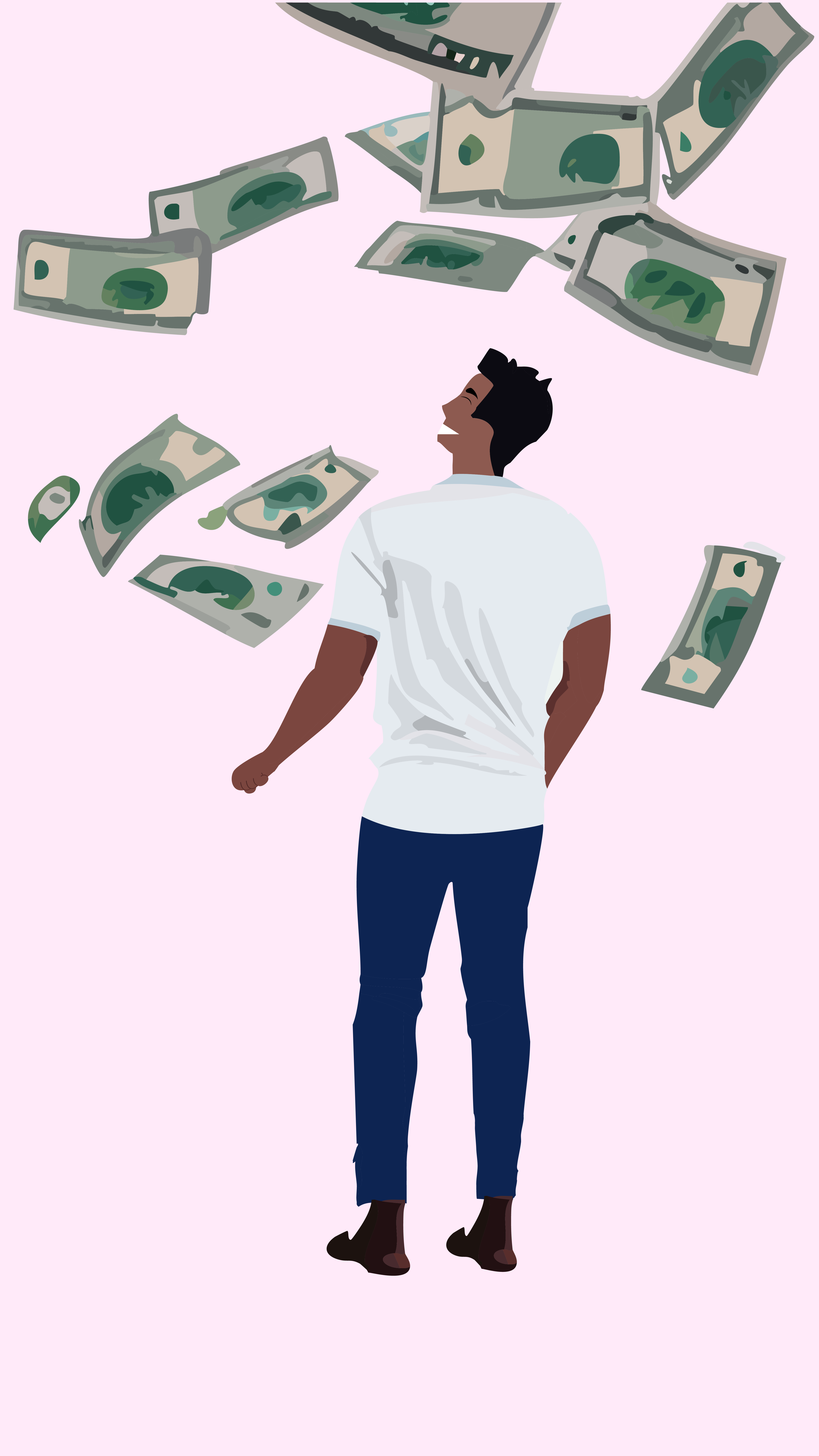 이번에는 "돈다발을 보며 즐거워하는 멋진 남성"