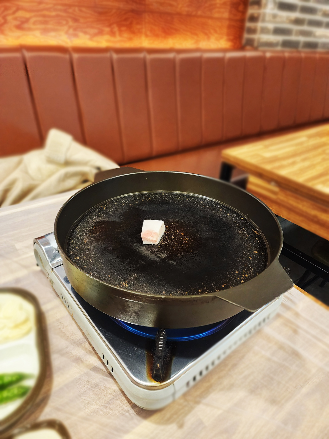 이렇게 먼저 고기 비계로 기름칠을
