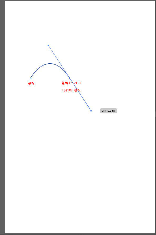 적당한 지점을 클릭하면 반곡선이 그려집니다.